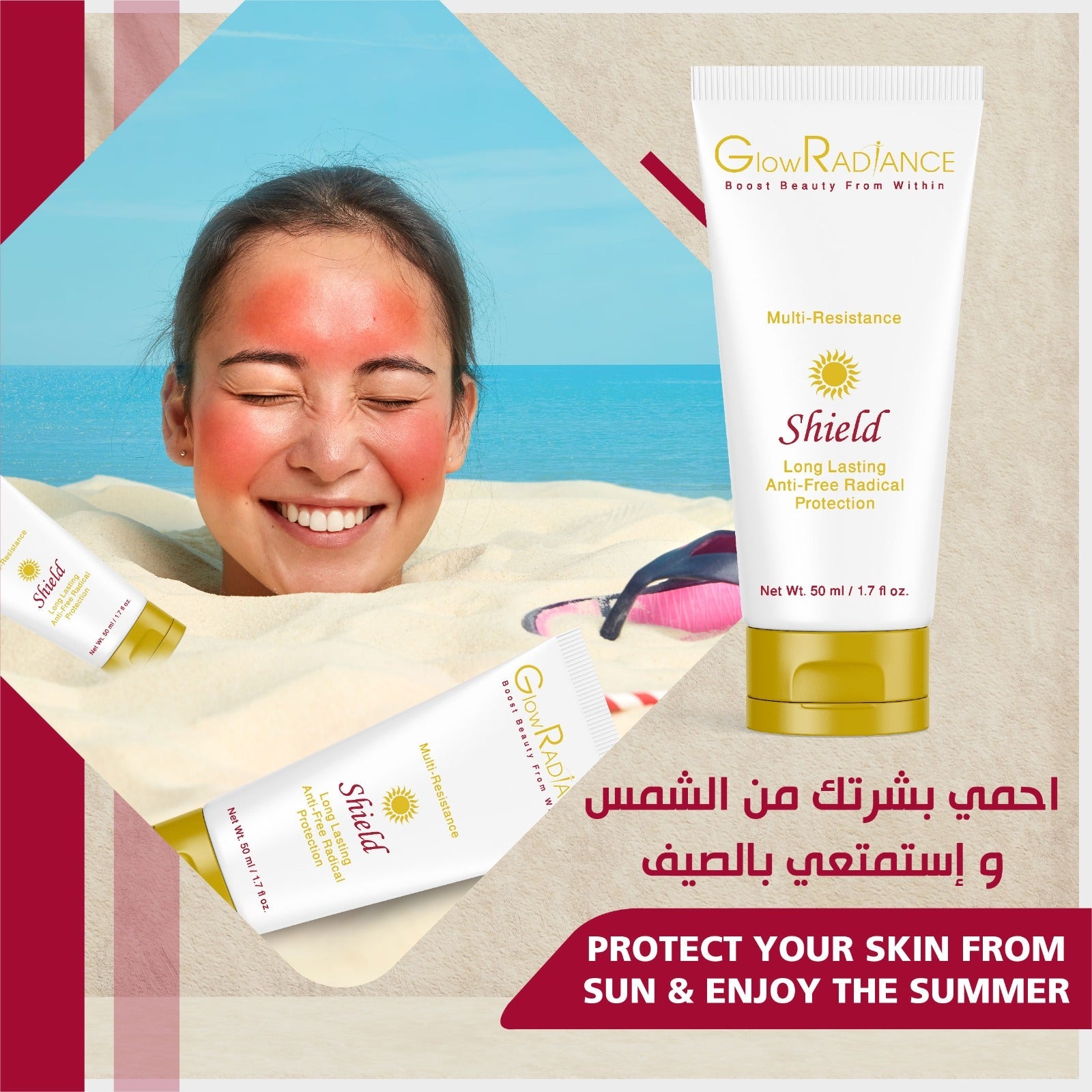 - فيتامين E: مضاد للأكسدة يساعد على حماية البشرة من العوامل البيئية المسببة للتوتر ويعزز توهجها الصحي.